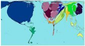 C’est une carte qui ne respecte pas la forme des pays représentés. Les pays sont représentés par des figures géométriques dont la taille dépend du renseignement donné (richesse, population…).
